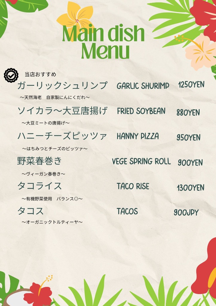 天然素材を使ったこだわりのハワイアンコースです